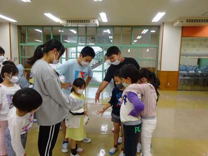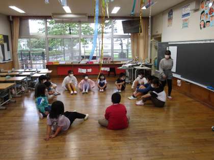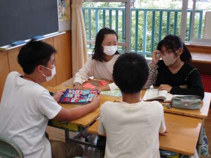 国語科の学習では、「目的や条件に応じて、計画的に話し合おう」という学習に取り組んでいます。「1年生と楽しく交流するためには、どんな遊びがよいか」という議題で話し合いを進め、今日は実際に1年生と交流活動を行いました。