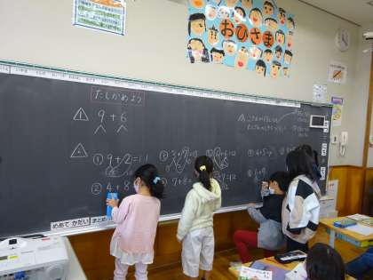 10のまとまりを意識すると、簡単に計算できるようになってきました。計算のスピードも上がり、どんどん問題に挑戦する姿が見られるようになりました。