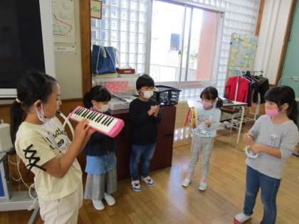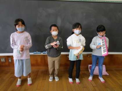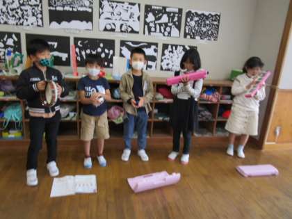 「山のポルカ」をグループごとに役割を決めて練習しています。とても息の合った演奏になっています。発表が楽しみです。