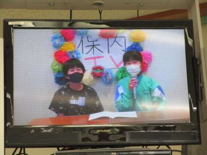 今日はテレビ放送がある日。元気全開委員会、体育委員会からのお知らせ、今日の占いもあり、静かな中にも笑顔が溢れる楽しい給食時間となりました。