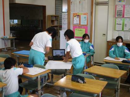 写真は、休み時間にもかかわらず、学校のために委員会ごとに集まり準備を進める子供たちの姿です。そんな姿を認め、励ましていきたいと思います。