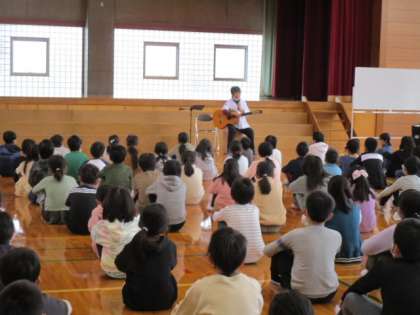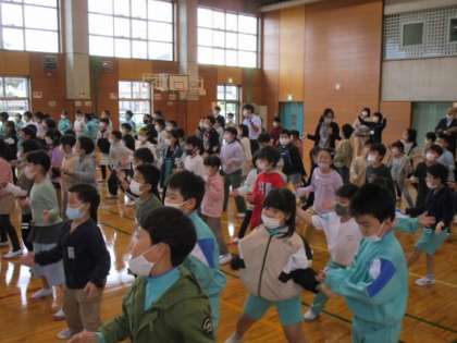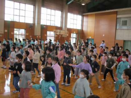 黒田先生から、合唱指導をしていただきました。子供たちはテンポよく体を動かしたり、声を出したりと楽しみながら「気球に乗ってどこまでも」を歌いました。1年生も2年生も笑顔があふれる楽しい合唱練習になりました。