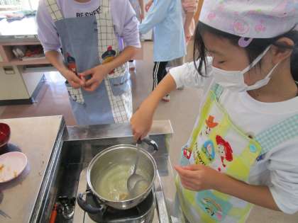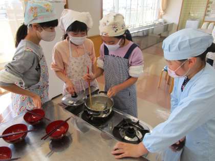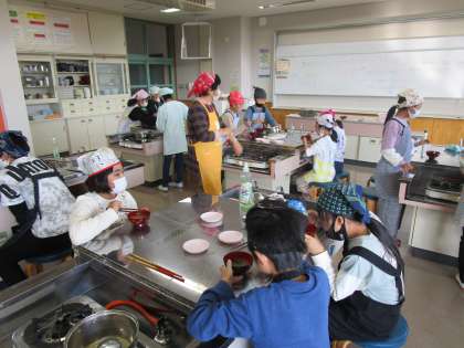 今日の家庭科の学習では、味噌汁を作りました。味噌だけを入れて食べてみると味が薄かったため、子供たちは出汁や具材を入れることの大切さを身をもって感じていました。