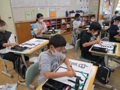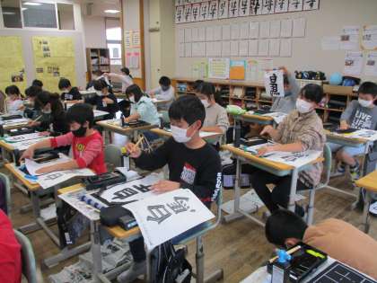 今日から書写の時間は「白馬」に挑戦です。二つとも見慣れた漢字なのですが、筆で書くと難しい!「白」の一画目の角度がうまく調整できない、「馬」の横画がそろわない、など難しいと感じるところを言語化し、どうすれば整った字を書くことができるか考えていました。今日の気付きを次回に生かしていきましょう。