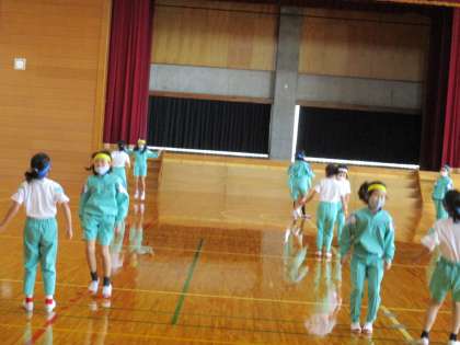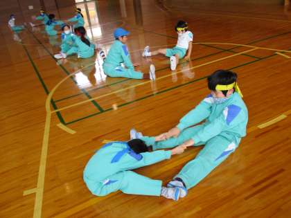 今日は、アリーナで体ほぐしの運動を行いました。体を動かす楽しさや心地よさを味わい、基本的な動きができるようにすることがねらいです。ペアになって、体のいろいろな部分を伸ばす中で、自然と子供たちの笑顔が広がりました。今後、多様な動きをつくる運動につながるよう、次回も楽しく活動していきます。