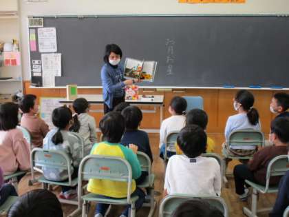 富山市立図書館の方が2年松組に訪問され、たくさんのお話を読んだり紹介したりしてくださいました。