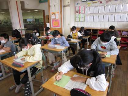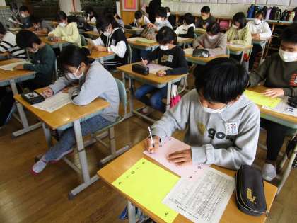 6年生の子供たちは、11月30日の独居老人訪問へ向けて準備を進めています。今日は、一人暮らしをされているご老人の方へ渡す手紙を書きました。「どんなことを書いたら喜んでもらえるかな?」「お会いするのが楽しみだな」「保内小のことや自分たちががんばっていることを伝えよう!」などと子供たち同士でよく考えながら書き進めていました。