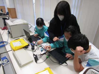 理科の学習では、「電気と私たちのくらし」の学習をしています。今日は、電熱線に電流を流すと、発熱するのかを実験で調べたり、「MESH」というプログラミング教材を使ってみたりしました。