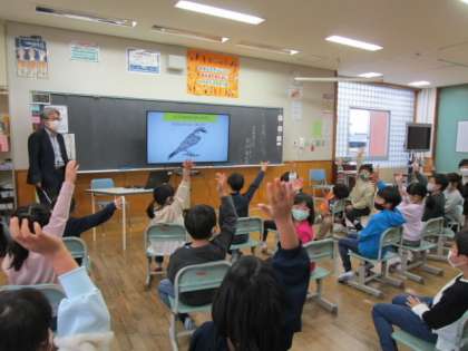 今日は日本野鳥の会の高畑先生から、「鳥を見に行こう!」と題して、保内地区で見ることができる野鳥についてお話を聞きました。