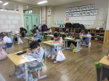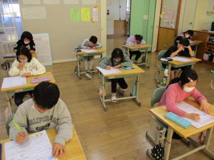 先週までは、単元の復習とテストに取り組み、今日から学習のたしかめをスタートさせました。1日1教科実施する計画で、今日は社会科です。テストに向けてしっかりと家庭学習を行い、復習してきた子供たちの手応えはどうだったでしょうか。
