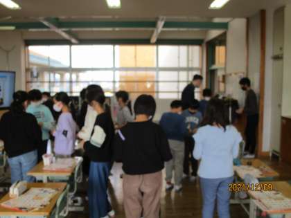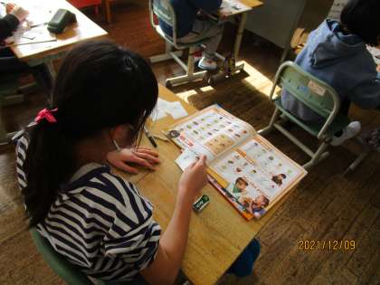 外国語科の学習では、英語で買い物をする練習を、ゲームを通して行いました。子供たちは、ゲームを行っていく中で相手と英語でコミュニケーションを取り、楽しそうに欲しい物を伝えていました。
