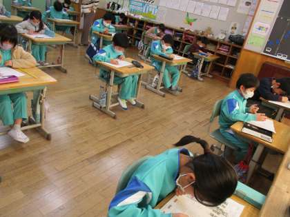 4教科のたしかめテストが終わりました。「全部書けた」と自信満々の子供や、「分からんとこあった」と悔しさを残した子供。テスト後、早速結果が気になっている様子も見られましたが、テストに向けて自分なりに家庭学習に取り組んだ子供たちの努力がすばらしかったと思います。