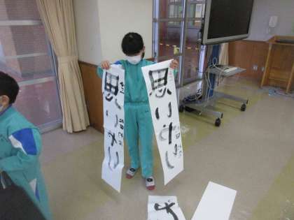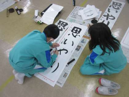 友達と協力して下敷きを作ったり、友達同士で「どっちの方がいいと思う?」と聞き合ったり、今年の漢字「思いやり」の言葉通り、温かい雰囲気で練習することが出来ました。