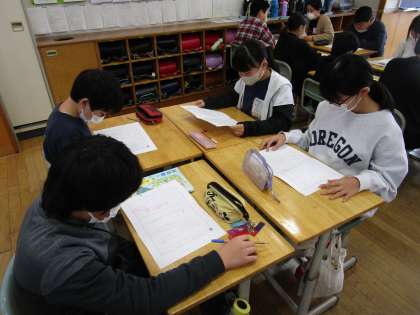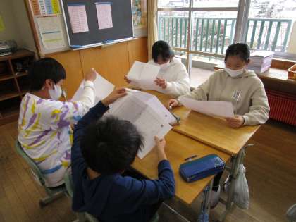 今日は、それぞれが書いた文章を読み合い、感想を伝え合いました。