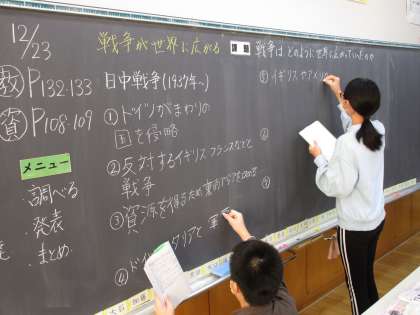 写真は、社会科「長く続いた戦争と人々のくらし」の学習の様子です。