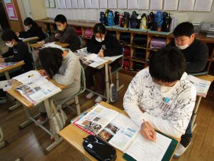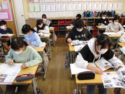 写真は、社会科「長く続いた戦争と人々のくらし」の学習の様子です。