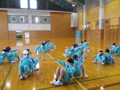 3学期初の体育は、体つくり運動をしました。