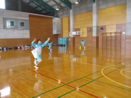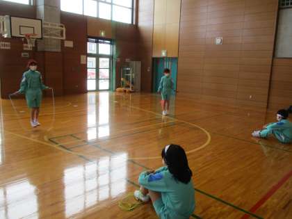 新聞ダッシュをして体を十分に温めてから、前跳びを中心に練習を重ねました。最後は、いろいろな跳び方で2人跳びを楽しみました。