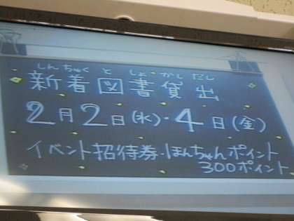 昼の放送では、図書委員会から連絡がありました。みんなの注目が集まる「新着図書」の貸出は「イベント招待券をもつ人」から行うとのことです。日頃からよく本を読み、図書室をよく利用している人には、こんなお得なことがあるのです。楽しみですね。