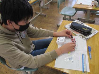 5年生は、理科の学習で電磁石を使った実験で魚釣りを行いました。どうしたらより大きな魚が釣れるのか自分で考え、仮説を立ててから実験に取り組んでいました