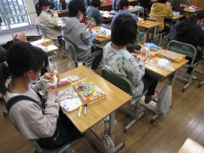 また、図工の学習では、芯材と粘土を使って「10年後の自分の姿」を表現する作品を作っています。