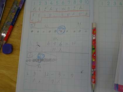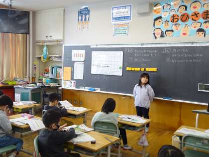 算数科では、どのようにして考えたかを図を使って分かりやすくまとめています。問題分から分かっていること、聞かれていることを読み取り、それらを図で表すことは、とても難しいことです。子供たちは、問題文をよく読んで丁寧に図を書こうと取り組んでいました。