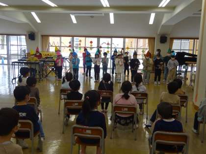 来年度、新1年生の子供たちとの交流会を行いました。学習発表会で披露した劇を発表し、1年生としてかっこいい姿を見せることができました。来年度は2年生として、1年生を引っ張っていくお兄さん、お姉さんとなります。今日は、2年生気分でせりふを言ったり、歌を歌ったりすることができたのではないかと思います。かっこいい2年生となれるように、あと1か月おひさまパワー全開で過ごしていきましょう!