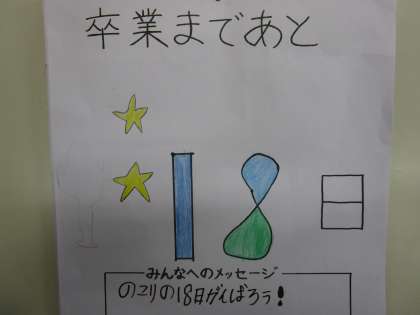 卒業まで残り18日になりました。今日、明日と雪の予報が出ており、寒い日が続いています。