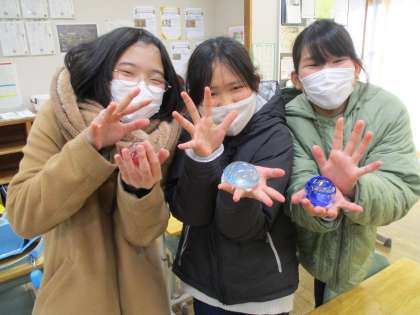 先日の校外学習で制作体験をしたペーパーウェイトが届きました。