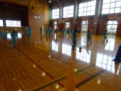 体育科の学習でボール蹴りに取り組んでいる子供たち。今日は、三角コーンまでドリブルでボールを運ぶ練習をしました。足の裏や甲でボールを動かすと、うまく前に進むことができましたね!ゲームができるように、できる技の練習を進めていきましょう!
