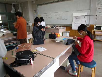 今日は、家庭科の卒業制作が全員完成しました。分からない所は、お互いに助け合いながら限られた時間でよくがんばりました。