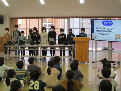 「難しい内容をどうしたら分かってもらえるか」「楽しみながら聞いて欲しい」など思いに沿って工夫を凝らし、一生懸命に発表していました。