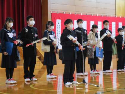 学校、卒業生に関わってくださったすべての皆さまにお礼申し上げます。ありがとうございました。卒業生の皆さんの前途に「幸多かれ!!」と祈ります。中学校でも、「元気全開」でがんばってください。