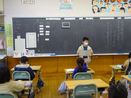 国語科では、1年間を振り返り、できるようになったことを発表しています。学習発表会でみんなで協力してやりきったことやなわとびの技が増えたことなど、色々なことに挑戦したことを思い出していました。同じ行事でも一人一人思っていることや成長したことは違い、2年生に向けてさらに頑張りたいという気持ちでいっぱいな子供たちでした。