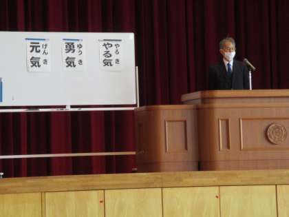 着任式後、1学期始業式を行いました。「やる気」「勇気」「元気」を大切にしてほしいという校長先生のお話を、子供たちは落ち着いて聞いていました。