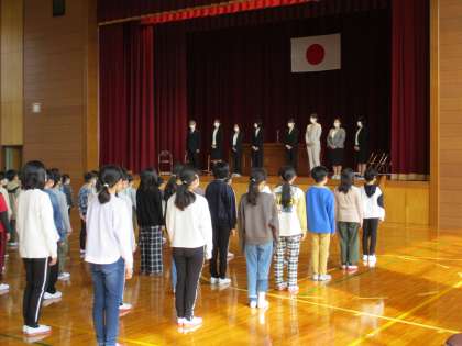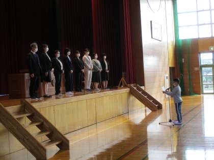 着任式では、新しく来られた教職員を児童代表の歓迎の言葉と「きらきら」を歌い、温かく迎えました。
