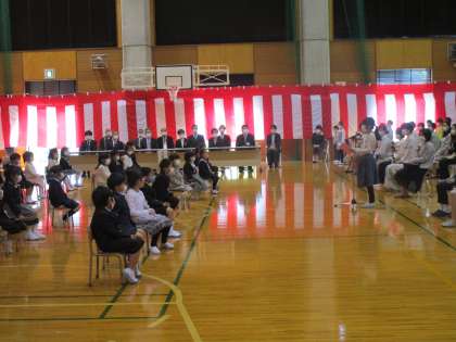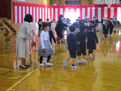 登校後、最初は少し緊張している様子でしたが、入学式で担任の先生から名前を呼ばれると、元気よく「はい」と返事をすることができました。2〜6年生の歓迎の言葉や歌も、うれしそうに耳を傾けていました。
