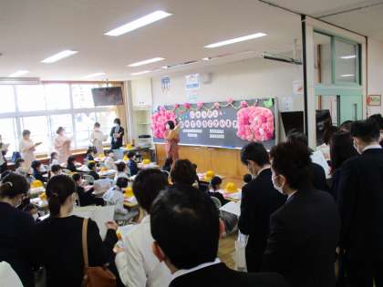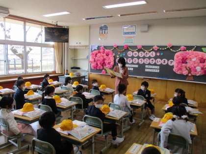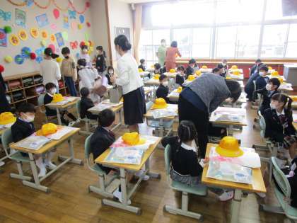クラスでは、学校の名前や学級の名前、担任の名前の確認をしました。みんなで元気よく言うことができました。