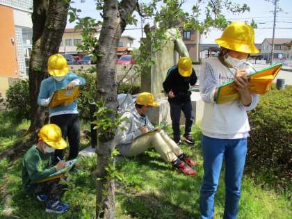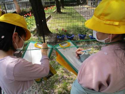 子供たちは、花だけではなく枝や葉の形や色も注意深く観察し丁寧に記録していました。1年間でどのように様子が変わるのか、楽しみながら観察を重ねていきましょう。