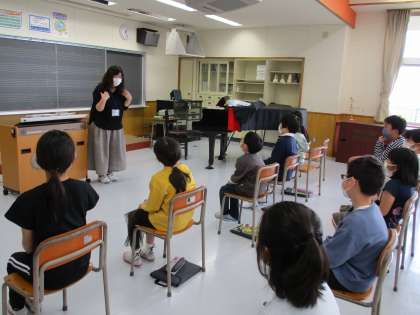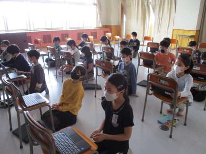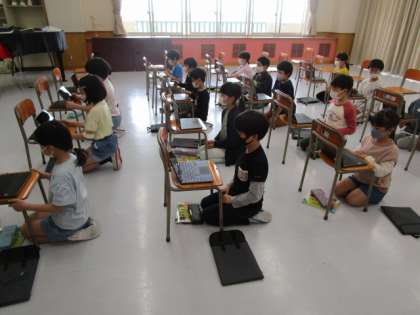 初めての学習ということで、8拍のリズムに合わせて自己紹介をしました。クロムブックに録画したので次回見るのが楽しみですね。