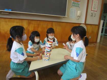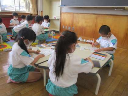 入学してから、だいたい1週間が経ちました。子供たちは、朝の準備の仕方が少しずつ身に付いてきました。朝の準備が終わった人から、教室横のプレイルームで、折り紙や塗り絵、オセロ等、自分の好きな活動をして過ごします。友達と話したり、一緒に遊んだりして楽しく過ごしています。