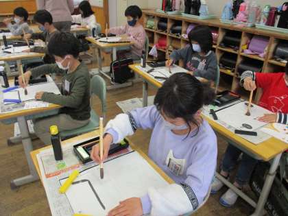 3年生になって初めての書写(毛筆)が始まりました。まずは、道具の名前や使い方、姿勢の説明を行いました。また、音楽科では、リコーダーを使って「シ」「ラ」の練習をしました。子供たちは、背筋をピンッと伸ばしてとても姿勢がよいですね。