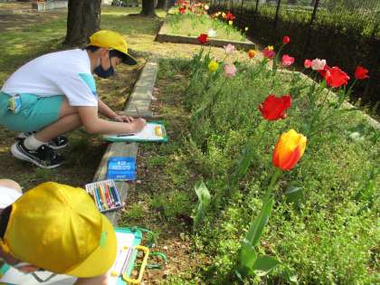 春らしい暖かな日が続いているので、理科の学習では積極的に観察に取り組んでいます。