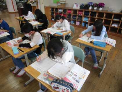 家庭科「自分の生活を見直そう」の学習を行いました。自分の生活の中で家族と一緒に過ごす時間はどのくらいなのか、自分の時間はどのくらいあるのかを書き出しました。「もっと家族で過ごす時間を増やしたい」という思いをもち、どうすれば家族との時間を増やすことができるのかを真剣に考えていました。