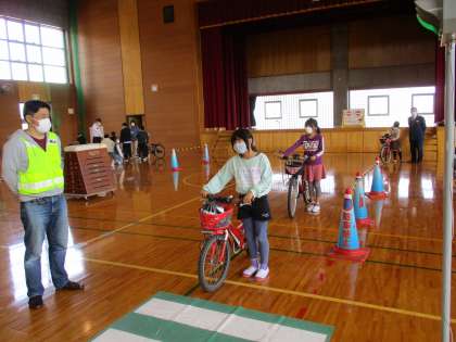 警察の方やPTAの方に来ていただき、交通安全教室を行いました。