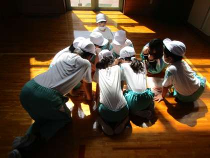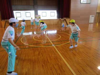 4年生では前回からタグラグビーに取り組んでいます。今回は団ごとに作戦を立ててから対戦を行いました。守りを固めたり、ラグビーボールを取る順番を工夫していました。次回の体育でも、今日の対戦を基に作戦を工夫して取り組みましょう。