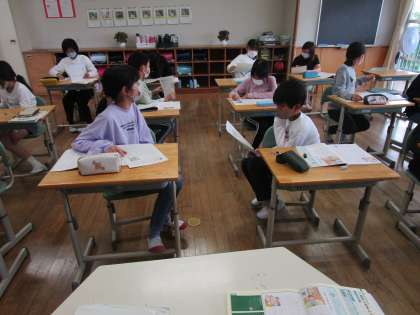 今日の道徳では、「本当の礼儀」について、「ただ言葉だけでお礼や挨拶をするのではなく、相手に対する敬意の気持ちや、思いやりの心を込めることが本当の礼儀だと思う」などと、深く考えていました。また、自分の生活を振り返りながら考える姿も見られました。