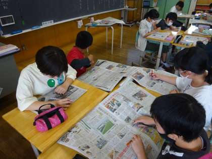 国語科では、和語・漢語・外来語の学習を進めています。和語は、やさしい感じがする!漢語は、かたい感じがする!外来語は、外国から来た言葉かな?などと、言葉のもつ雰囲気を感じながら取り組みました。新聞紙の中にもたくさんの和語・漢語・外来語があり、グループのみんなで多くの言葉を探すことができました。