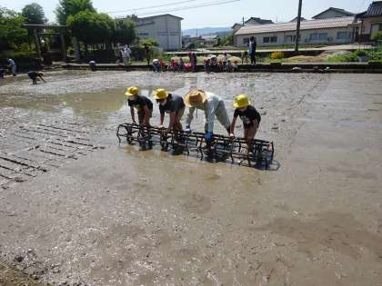 今日は、ファーム高善寺の皆さんや地域の方と一緒に田植え体験を行いました。田んぼに入るときに、「うわー!ぬるぬるする!」「足が抜けない!」「植えるの大変だ!」などと、田植えの大変さを実感しながら子供たちは取り組んでいました。特に同じ姿勢でずっと植え続けることに大変さを感じたようです。昔の人たちは、こんな思いをしながらお米を育てていたことに気が付き、お米をいただくときには、より一層感謝しながら食べたいですね!これから、どのように大きくなっていくのか、秋の収穫まで楽しみですね!