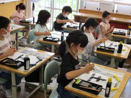 今日から新しい「土」という字に挑戦した子供たち。だんだん片付けも上手になってきました。自分たちが書いた紙のゴミも、かさを減らすために、小さく小さくまとめています。